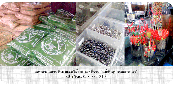 สอบถามสถานที่เพิ่มเติมได้โดยตรงที่ร้าน "แม่จันอุปกรณ์ตกปลา" หรือ โทร. 053-772-219 |