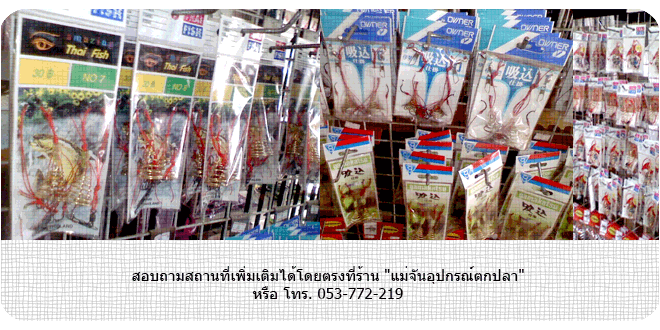 สอบถามสถานที่เพิ่มเติมได้โดยตรงที่ร้าน "แม่จันอุปกรณ์ตกปลา" หรือ โทร. 053-772-219 |